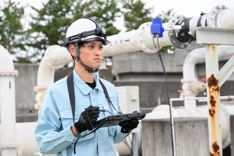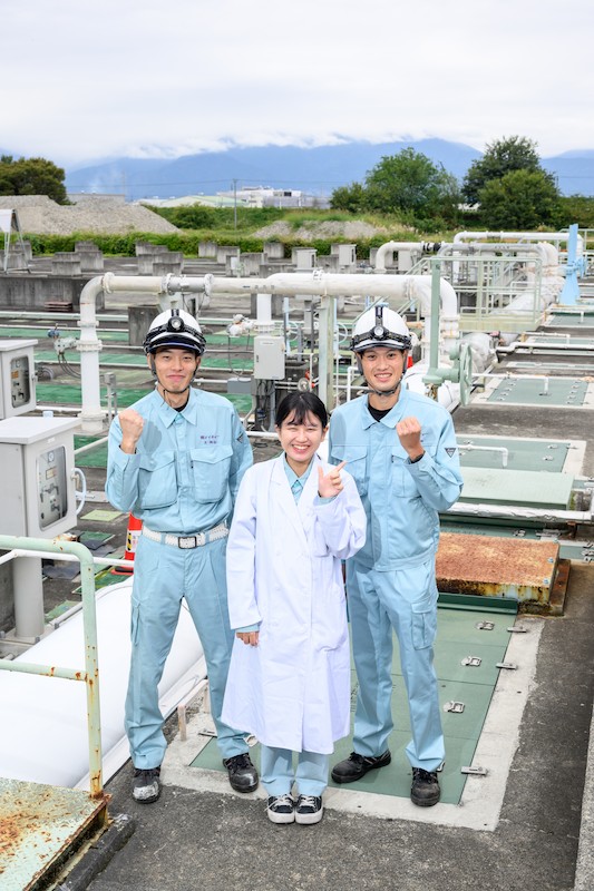 当社からは、環境部、峡東管理事務所、北麓管理事務所から各1名、計3名の若手社員が、県内の高校生に向けて、メイキョーで働く魅力や思いを発信しています。